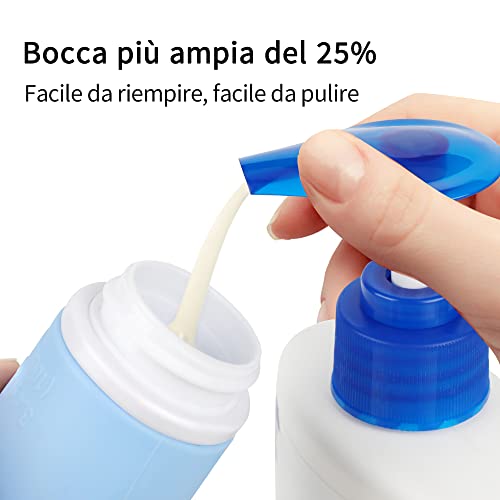 ◆ Design a prova di perdite - Con un design anti-perdita a 3 strati, queste bottiglie da viaggio erogano il contenuto solo quando vengono premute. Non devi mai preoccuparti dell'imbarazzo della perdita di liquido nella tua borsa. Basta dire addio al set di bottiglie di plastica che perdono