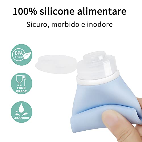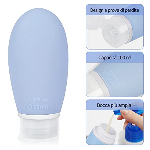 Opret Bottiglie da Viaggio 100ml in Silicone, 3 Pezzi Kit Contenitori da Viaggio Flaconi con Custodia per Shampoo, Liquidi and Lozione, Nessun BPA