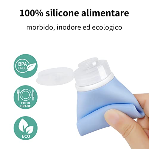 【Approvato dalla TSA】 Approvato dalla compagnia aerea per il trasporto. La capacità delle bottiglie di silicone non supera i 60 ml, possono essere portate a bordo dell'aereo, rispettano la politica TSA.