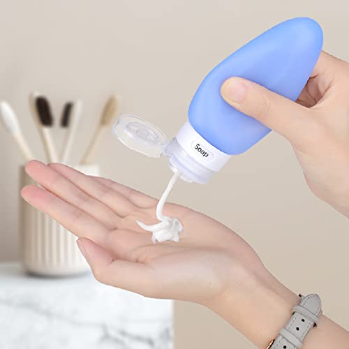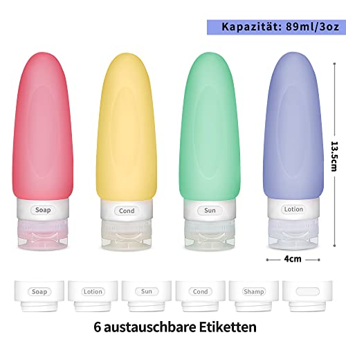 Opret Bottiglie da Viaggio in Silicone, 89ml 4 Pezzi Kit Contenitori da Viaggio Flaconi con Custodia per Shampoo, Liquidi and Lozione, Nessun BPA