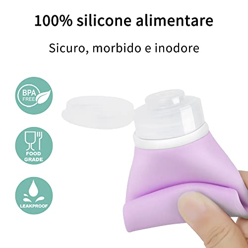 【Design a prova di perdite】 Le kit viaggio liquidi adottano un design a prova di perdite per garantire una buona tenuta. Non preoccuparti della fuoriuscita di liquidi nel bagaglio e nella tua borsa, dì addio a quelle bottiglie di plastica che perdono. Accessori viaggio perfetti per gel e shampoo, balsamo, lozione, ecc.
