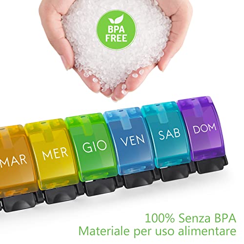 Opret Portapillole Settimanale ITALIANO 7 Giorni Pill Box Giornaliero 7 Scomparti Grande Stampa per Gli Anziani Viaggio Uso domestico