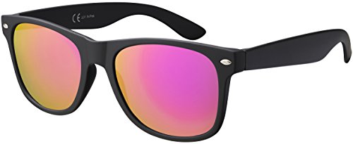 La Optica B.L.M. Occhiali da sole unisex UV400 CAT 3 CE, con sacchetto per occhiali, panno per la pulizia - a specchio, polarizzato, varianti gradiente, Nero gommato (lenti: rosa a specchio)