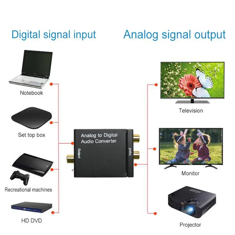Optical Digital Stereo Audio SPDIF Toslink Coaxial Signal To Analog Converter DAC Jack 2*RCA Amplifier Decoder Adapter
