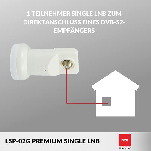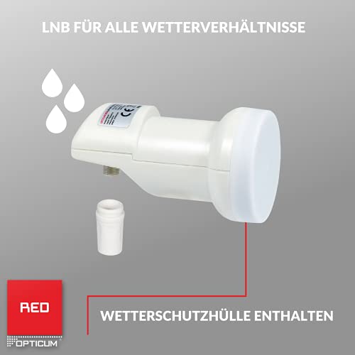 RED OPTICUM LSP 02G LNB I singolo LNB digitale resistente al calore e al freddo 1 via con solo 0,1 dB Figura di rumore inclusa custodia di protezione dagli agenti atmosferici I Full HD - 3D - UHD 4K