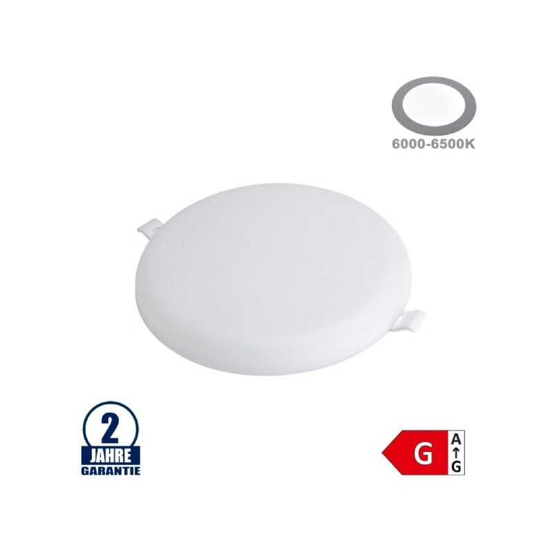 Downlight LED 24W con un flusso luminoso 2010lm. Dimensioni: altezza ∞170mm 27mm finitura bianca. Ombra leggera: Bianco di Giorno 6000K - angolo di illuminazione a 180°. Downlight è dotato di driver, telaio e LED. Lunga vita: 25.000 ore. Garanzia 2 anni. 6000K 24W 134W 2010lm 180° 25000h Consumo di watt: 24 W Peso: 340G Materiale: Plastica e alluminio Indice di protezione IP: IP54 Colore: Bianco Frequenza nominale (Hz): 50-60Hz Modulo: Rotondo Angolo di illuminazione: 180° Durata di vita: 25000 ore Classe energetica: HA Température de couleur (K): Blanc du jour 6000K Efficienza luminosa (lm/W): 84 lm/W Contenuto di mercurio: no Durée d'allumage (s): 0,1 s Rivelatore: no Diametro di perforazione: 155 mm Altezza: 27 mm Certificazione: QUESTO Colore della luce: Blanc froid Diametro: 170 mm Dimmer per la regolazione dell'intensità: No Garanzia: 2 anni Intervallo di temperatura ambiente (°C): -30°C/+50°C Nuova categoria energetica: G Disponibilità: Spedizione entro