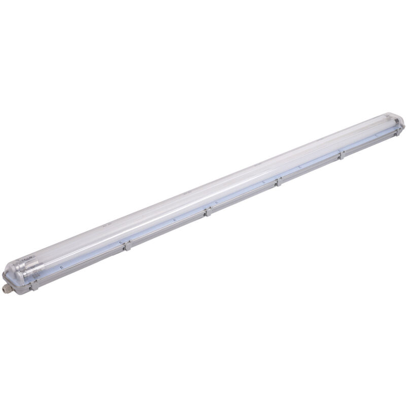 Box con doppio tubo LED T8 G13 2x22W con una potenza di illuminazione 2x44W. Ombra leggera: Bianco del giorno 6000K. Flusso luminoso: 4000lm. Funziona in 220-240V. Angolo di illuminazione: 120°. Dimensioni: lunghezza: 1585mm, larghezza: 113mm, altezza: 63mm. Custodia impermeabile IP65, uso interno - esterno. Installazione nel barile. Kit di fissaggio e tubi LED inclusi. Lunga vita: 25.000 ore. Garanzia 2 anni. 4500K 2x22# 2x44# 4000lm 120° 25000h IP65 Questa scatola con tubi a doppio LED T8 2x22W porta l'illuminazione di alta qualità, con potenza 2x44W, che lo rende molto efficace per illuminare grandi superfici. L'ombra luminosa è un bianco del giorno 6000K, che offre una luce luminosa e fredda. Con un flusso luminoso di 4000lm, offre un'elevata intensità luminosa. Quando i tubi LED T8 sono inclusi alla fine della vita, è possibile sostituirli facilmente. Questa scatola funziona in una gamma di tensione di 220-240V, e ha un angolo di illuminazione di 120°, fornendo una copertura