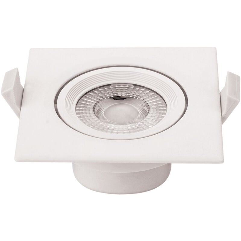 Tavolo bianco quadrato LED con LED COB 7 Watt. Illuminazione equivalente a 35 Watt. Luce bianca del giorno 6000K. Realizzata in plastica, testa inclinabile 30°, leggera diffusa a 50°. Tutto incluso: supporto, trasformatore e lampada a LED, connessione alla rete 220V. Diametro foro 75-80mm, lato 90mm, altezza 40mm. 6000K 7W 35W 525 5 50000h Un soffitto compatto e potente Questo punto ha dimensioni compatte: diametro foro 75-80mm, lato 90mm, altezza totale 40mm. La connessione viene effettuata direttamente sulla griglia elettrica 220V convenzionale - conveniente ed efficiente. Offre una bella illuminazione senza fili o elementi visibili che superano il soffitto. La luce può essere facilmente orientata al luogo da illuminare grazie alla testa inclinabile a 30°. La profondità del posto è solo 40mm o meno dei punti classici, permettendo di essere incorporato anche nei soffitti con uno spazio basso disponibile. Illuminazione con tecnologia COB LED (matriciale) Questo spot LED da incasso ha