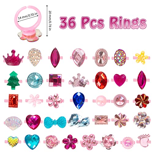 OPUHOHR 36 Pezzi Anello Bambina, Anelli Regolabili per Ragazze, Anelli per Gioielli con Principessa con Scatola a Forma di Cuore per Bambini Favori di Compleanno (Stile Casuale)