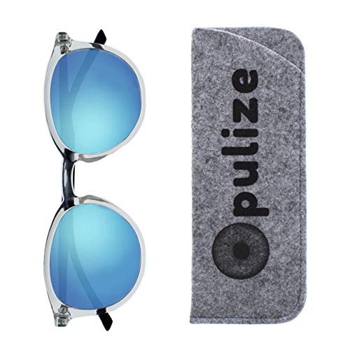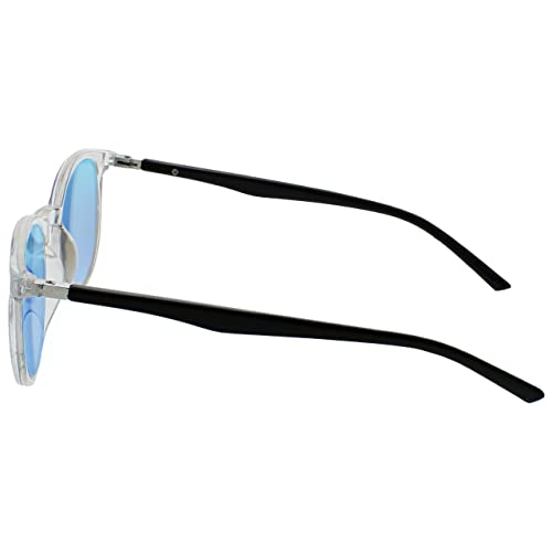 Chiaro davanti con le braccia nere. Lente a specchio blu. Include custodia in stile designer gratuita.