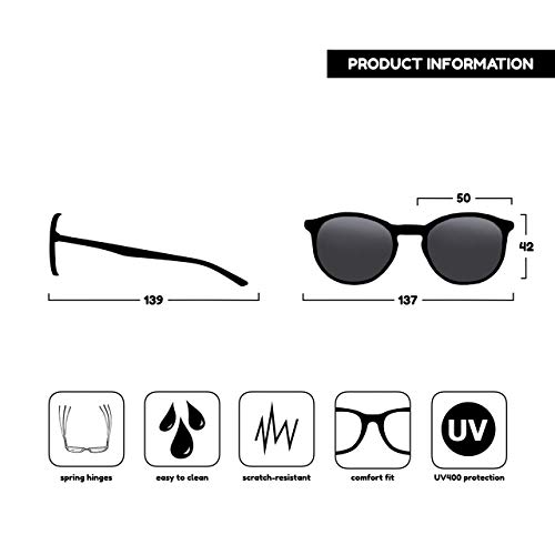 Robusto design del telaio rotondo con cerniere a molla. Facile da pulire. Resistente ai graffi. Vestibilità comoda.