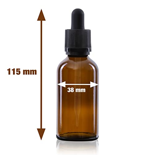 Oputec 20 x 50 ml bottiglia con pipetta di vetro + 20 etichette di etichettatura - Flaconi da farmacia con pipetta per liquidi - Bottiglie di vetro ambrato