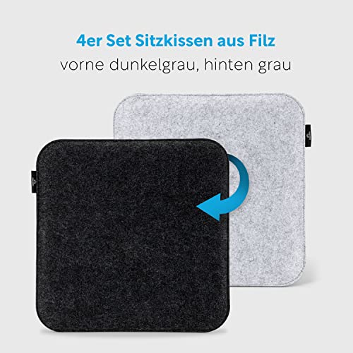 Oradomo | Set di 4 cuscini per sedia in feltro, rettangolari, 35 x 35 cm, da reversire, in feltro lavabile, per sedia, panca, sgabello in casa e giardino, grigio scuro