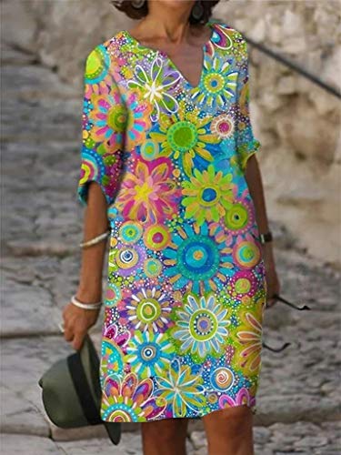 ORANDESIGNE Abito Casual da Donna Casual Scollo a V Foglia di Acero Farfalla Fiori Stampa Mezza Manica al Ginocchio Abito B Verde S