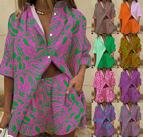 ORANDESIGNE Completo Pantaloncino e Camicia Donna Outfit Due Pezzi Estate Set Shorts Boho Stampa Tuta Completa Elegant Casual Completi 2 pezzi Abbigliamento Streetwear Completini a 05 L