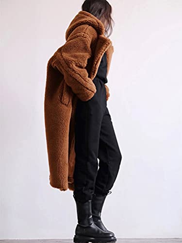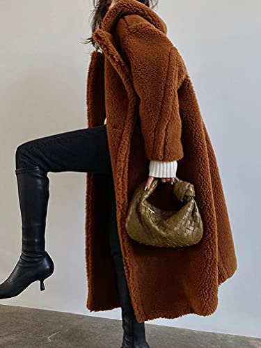 ORANDESIGNE Donna Cappotti Felpa con Cappuccio Invernale Cardigan con Zip E Tasche Cappotto in Pelliccia Sintetica Capispalla Taglie Forti Giacca Calda Elegante Parka marrone S