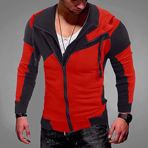 ORANDESIGNE Felpa con Cappuccio da Uomo Giacca con Zip Pullover Hoodie Oversize 2 in 1 Maniche Lunghe Sportivo Fitness Cappotto A Rosso XXL