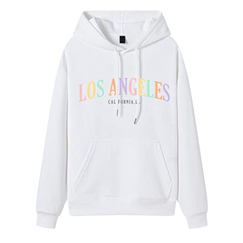ORANDESIGNE Felpa Donna Pullover Multicolore Maglia a Manica Lunga Autunno Felpa Sportiva Ragazza con Cappuccio Maglione Felpe Sport Ragazza A Bianco M