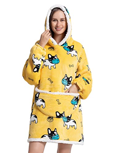 Coperta con cappuccio soffice e calda morbida: La felpa con cappuccio oversize a maniche lunghe è estremamente grande, puoi tirare braccia e gambe nel morbido e soffice sherpa e ti copre completamente bene sul divano, che ti tiene caldo e comodo mentre lavori sul tuo laptop, oziare in casa, guardare la TV, giocare ai videogiochi o leggere sul letto, sul divano, ecc.