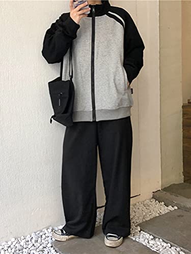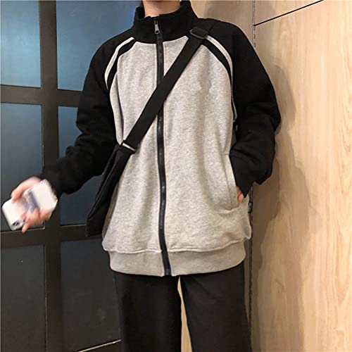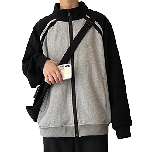 ORANDESIGNE Giacche da Donna Cappotti Hip Hop Harajuku Patchwork Maniche in pelle PU Cerniera Pulsanti Cappotto Universitario Giacca da Baseball Uomo Cappotto di Lana Autunno Inverno (L Nero, XL)