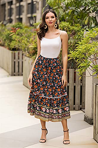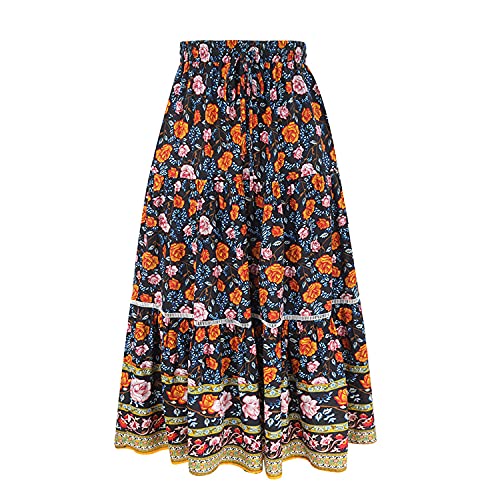 ORANDESIGNE Gonna Lunga da Donna a Vita Alta con Coulisse Boho Maxigonna a Trapezio Gonna Festiva Gonna Floreale Gonna Maxi retrò Gonna a Pieghe Estiva Maxi Skirt B Blu XS