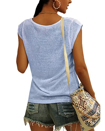 ORANDESIGNE Magliette da Donna Manica Corta con Scollo a V Magliette Estive Larghe Magliette Basic Manica Corta Tinta Unita Canotta Top A Azzurro 38