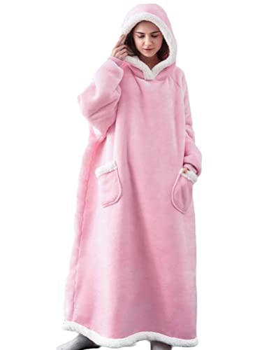 ORANDESIGNE Pullover Felpa con Cappuccio Coperta Oversized Blanket Hoodie Coperta Sherpa Pile Invernale Indossabile Fleece Jumper Gigante Sweatshirt Felpone A Rosa Chiaro Taglia Unica