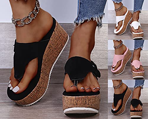 ORANDESIGNE Sandali con Plateau Donna Estive Spiaggia Infradito da Donna Casual Ciabatte Antiscivolo Morbido Estate Pantofole Sandali Flip Flop da Mare Piscina D Nero 36 EU