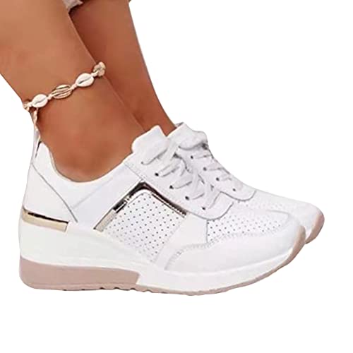 ORANDESIGNE Sneakers con Lacci Donna Scarpe da Ginnastica Moda Zeppa da Donna Casual Scarpa Estiva Stringata Sneaker Sportive A Bianco 39 EU