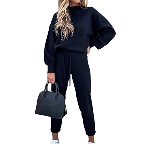ORANDESIGNE Tuta Sportiva da Donna Moda Set 2 Pezzi di Felpa a Collo Alto con Pantaloni della Tuta Confortevole Tuta da Jogging Tuta Tempo Libero B Blu L