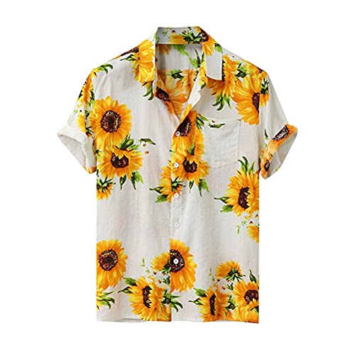 ORANDESIGNE Uomo Funky Camicie Hawaiana in Cotone Lino Manica Corta Vacanze estive Aloha Stampato Beach Casual Hawaii Camicia T Bianco XXL