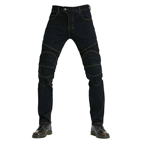 ORANDESIGNE Uomo Pantaloni da Moto Biker Jeans Protezione Motorcycle Pantaloni Rinforzato Slim Fit Armature Pants, 4 x Pad di Protezione D Nero S
