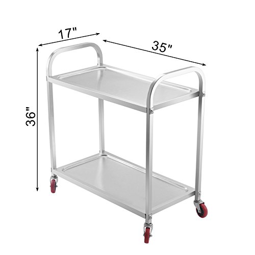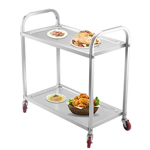 Orangea, carrello resistente per catering su ruote, a 2 ripiani, in acciaio inox, per cucina o uso commerciale in ristoranti, alberghi, sale da pranzo, 100 kg 2 Tier
