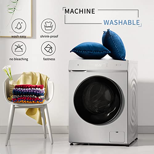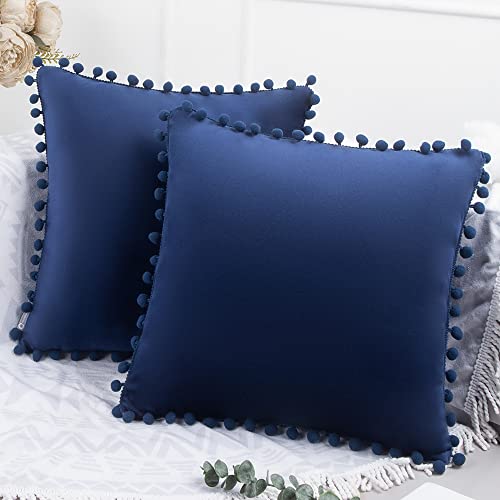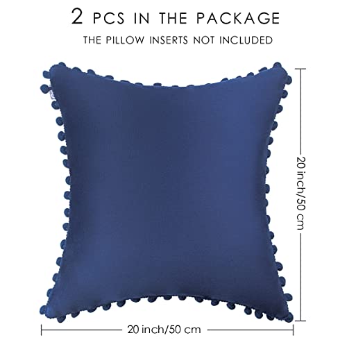 ORANIFUL Federe Cuscini 2 Pezzi Divano Quadrati Morbido di Velluto con Pompoms per Cuscini Decorativi Camera Sedia Soggiorno 50x50 cm Blu Scuro
