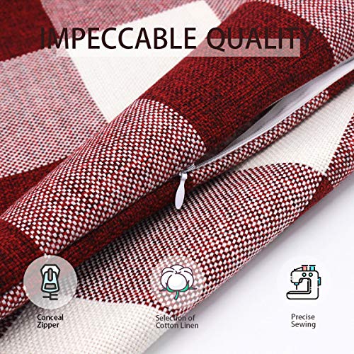 ORANIFUL Fodere Cuscini Set da 2 Copricuscini Divano Tartan Quadrati Decorativi in Lino per Letto Décor Casa Auto 45x45 cm (Rosso&Bianco, 2 Pezzi)