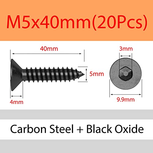 ORANXIN M5 x 40mm 20 Pcs Testa piatta Viti autofilettanti Livello 8.8 Acciaio al carbonio Svasato Viti auto-perforazione Esagono interno Viti per legno