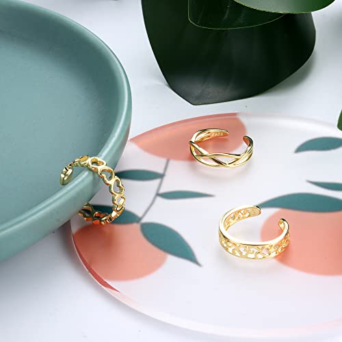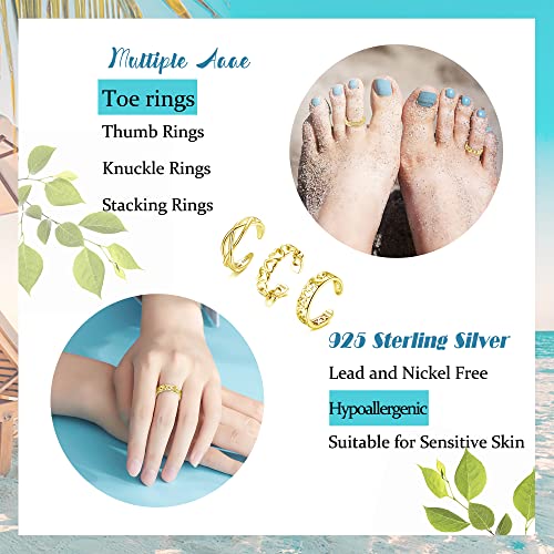 ORAZIO 3Pcs 925 Anelli di Punta in Argento Sterling per Le Donne Ipoallergenico Regolabile Aperto Nodo Celtico Fiore Fascia Anello di Punta Set Carino Anelli di Punta dei Monili del Piede