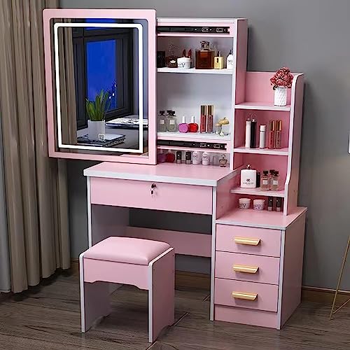 ORBANA Toeletta Trucco Con Luci, Con Luce A Led Mirro, Con Ripiani Portaoggetti Cassetti, Piccolo Set Di Vanità Trucco Carino, Vanità Per Donne Con, Tavolo Da Trucco Per Camera Da Letto