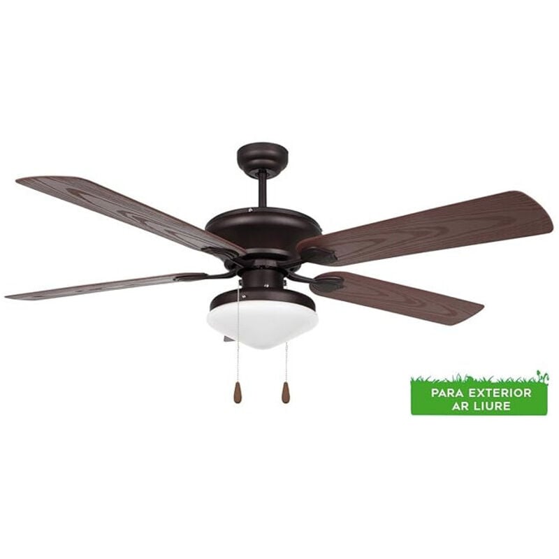 Per uso interno ed esterno. Diametro: 132 cm. Potenza: 60 W Protezione IP-23. 5 preventivi in PVC. 3 velocità della ventola. Sistema di ventilazione reversibile: modalità inverno ed estate. 1 plafoniera con luce tipo E27, 2 x 60 W (non inclusa). Altezza: 47 cm.