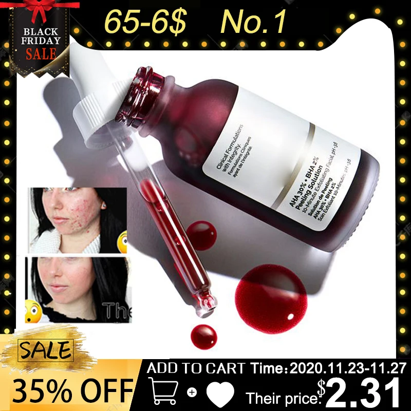 Ordinary Face Makeup Peeling Solution 30ml AHA 30% + BHA 2% Acne Removing Serum Repair Hyaluronic Acid Face Skin Care 30ml