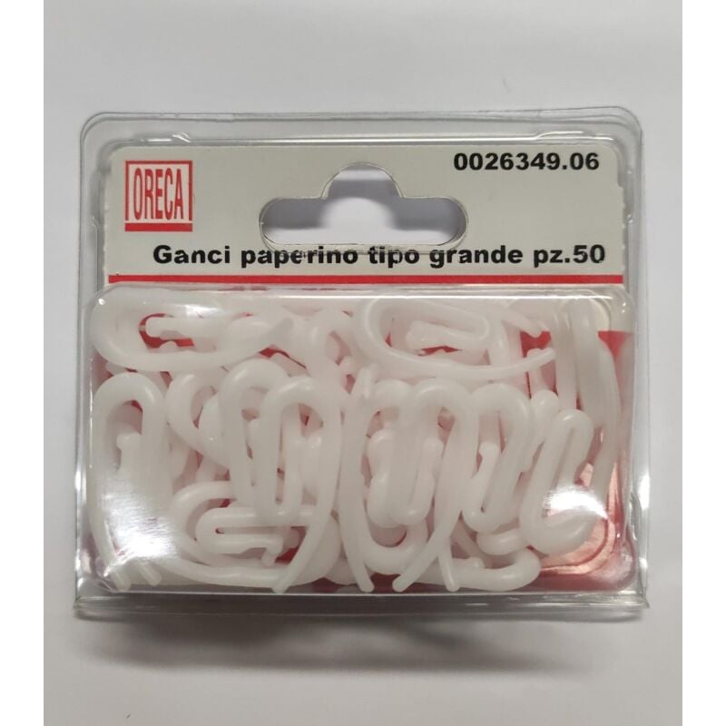 ORECA - GANCI PAPERINO TAGLIO GRANDE PZ50 Facili da utilizzare In plastica bianca.