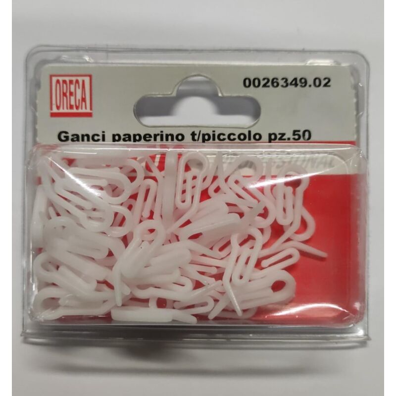 ORECA - GANCI PAPERINO TAGLIO PICCOLO 50PZ Facili da utilizzare. In plastica bianca.