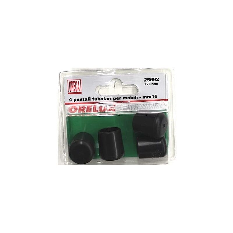 Oreca - 4 puntali tubolari per mobili in pvc nero 16mm