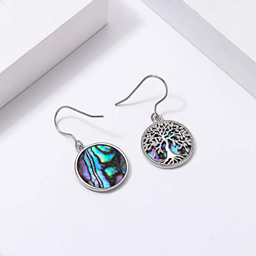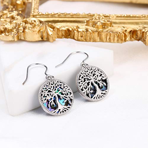 Orecchini Albero Della Vita, Orecchini Pendenti in Argento Sterling 925 per Donna, Orecchin Conchiglia Abalone, Gioielleria Regalo per Mamma Moglie Figlia