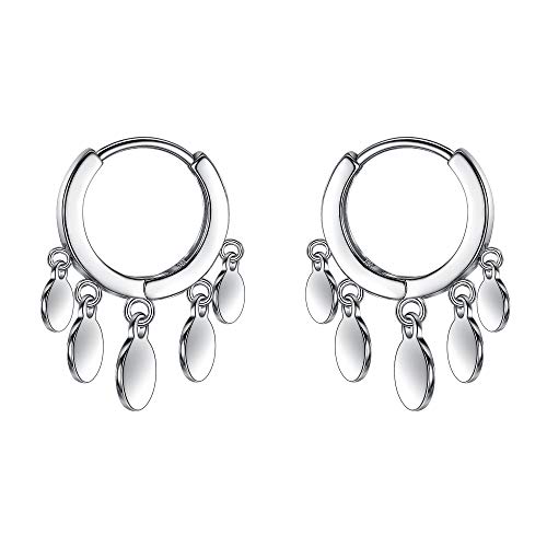 Orecchini Argento,EVER FAITH 925 Argento Semplice Casual goccia Pendente Piccolo Orecchini a cerchio per donne Ragazze