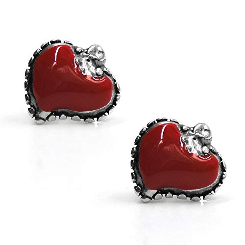 Orecchini in Argento Sterling 925 Brunito Smaltato a Mano Bottoncino Sacro Cuore Argento