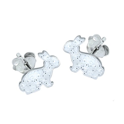 Orecchini in argento Sterling a forma di coniglietto, con lustrini bianchi
