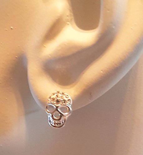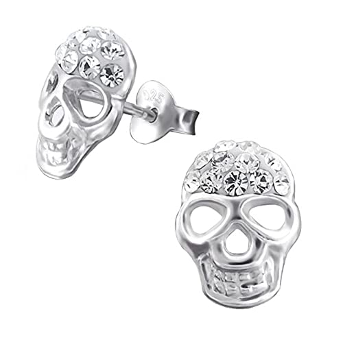 Orecchini in argento Sterling a forma di teschio con gemme di cristallo.