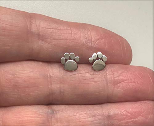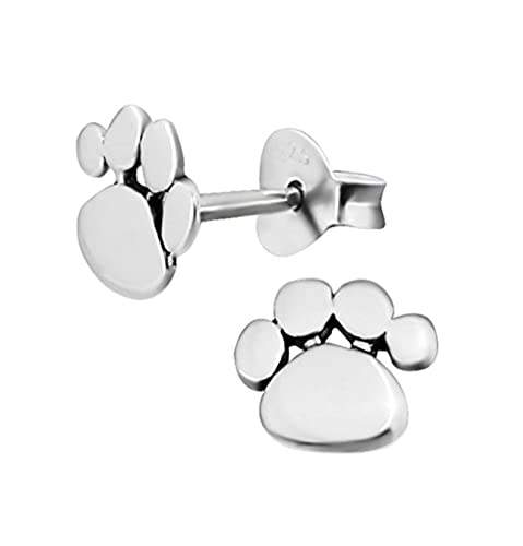 Coppia di orecchini a bottone, in argento sterling ossidato, a forma di zampa di cane.