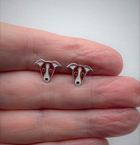 Orecchini in argento Sterling marrone scuro e bianco italiano levriero/whippet cane regalo
